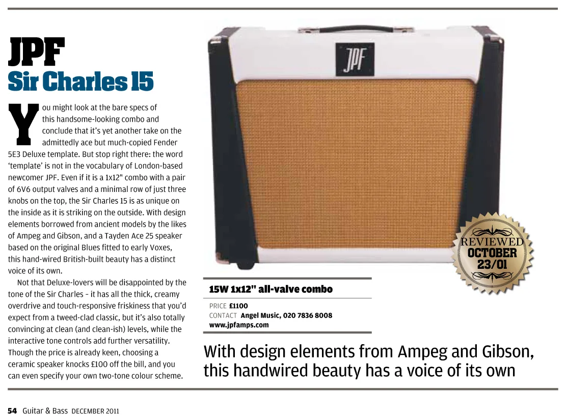 Click here for the review of our Sir Charles 15 combo in Guitar & Bass magazine.